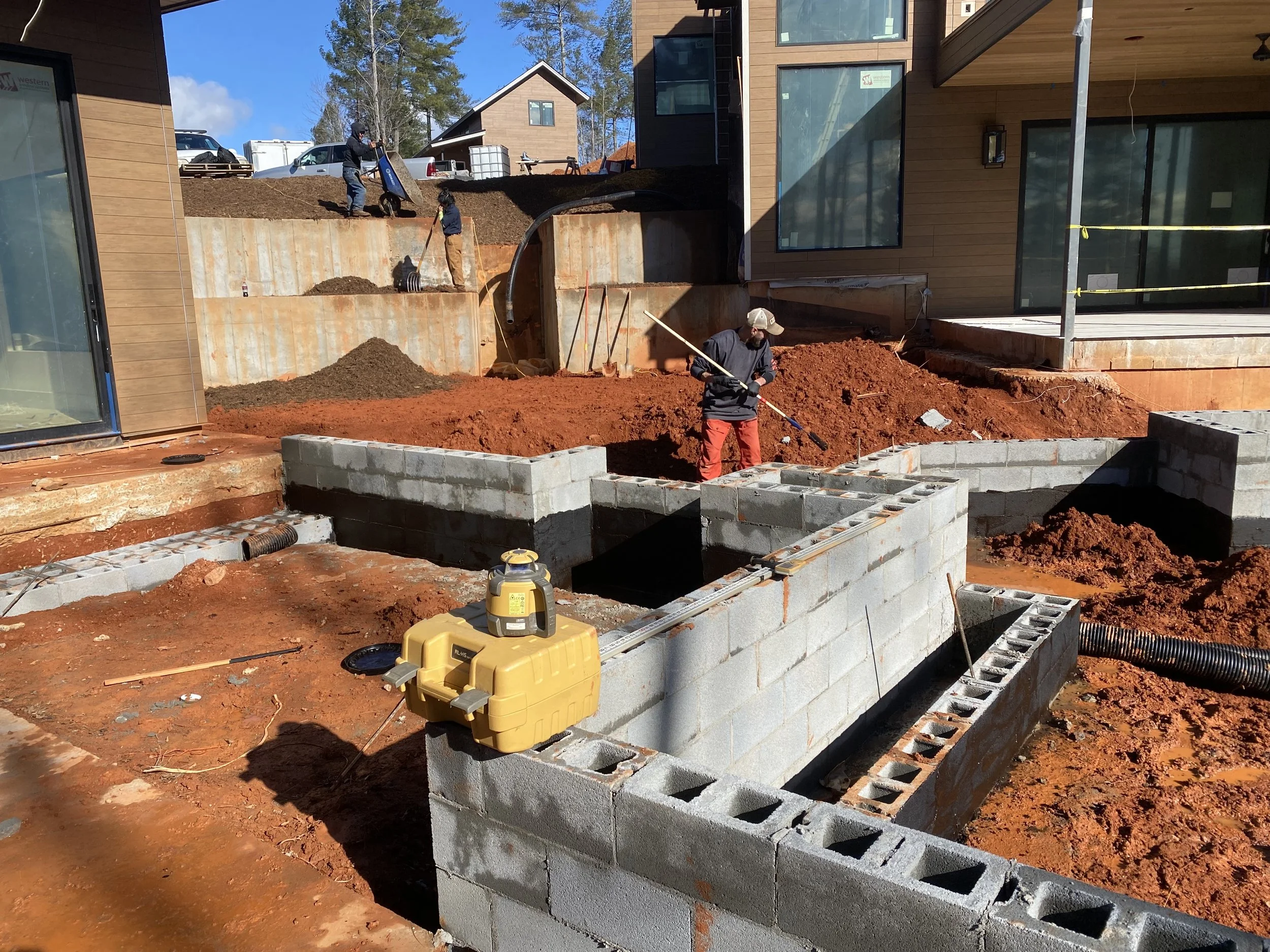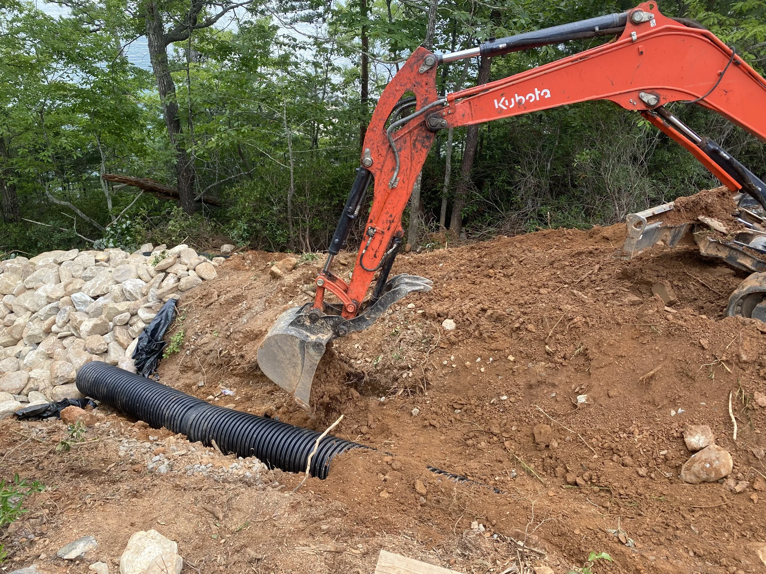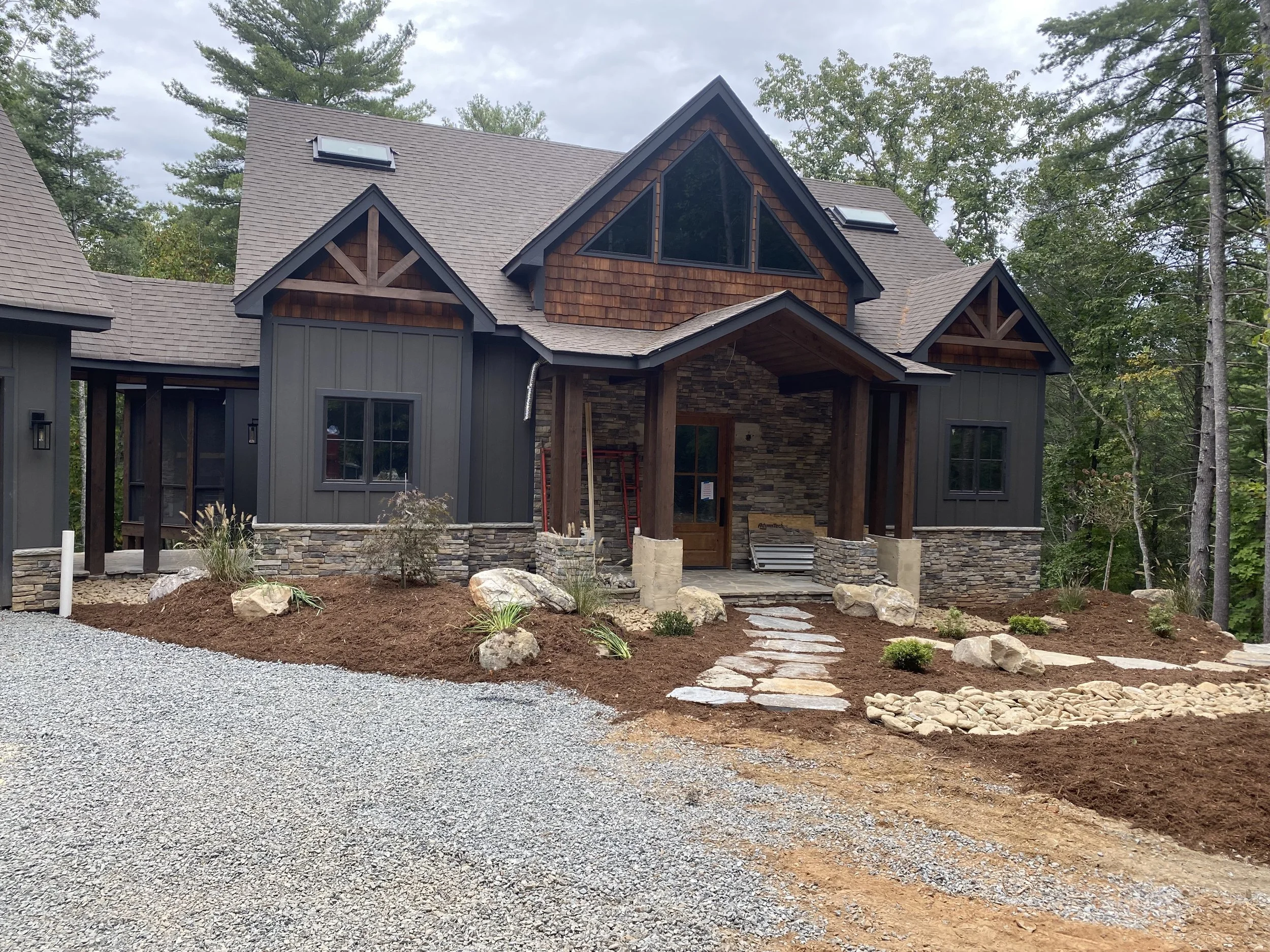 Custom Designs & Installations: Boulder retaining walls, culverts, driveways, fire pits, grading, mulching, plantings, river rock drainage, sod, stone pathways, stone steps